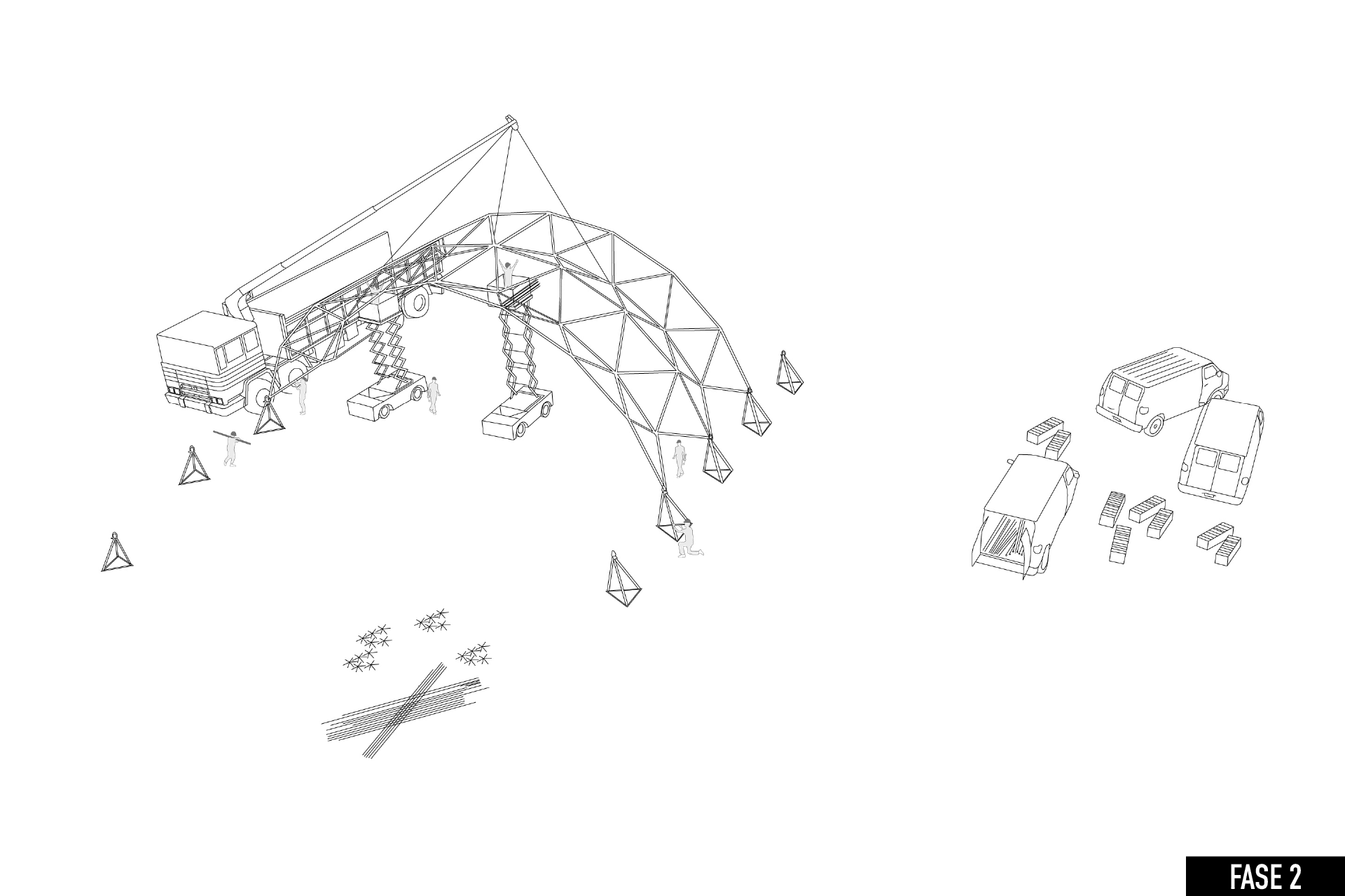 La estructura nace como activador urbano, con el objetivo de transformar, junto con lxs propixs vecinxs, espacios urbanos degradados en lugares que puedan ser utilizado por y para la ciudadanía. El carácter participativo e integrador de este equipamiento portátil prevé que tanto la instalación, como la planificación y despliegue de las actividades, se desarrollen en forma de talleres abiertos a la comunidad, generando nuevos proyectos y sinergias, en las cuales lxs protagonistas deben ser lxs ciudadanxs.